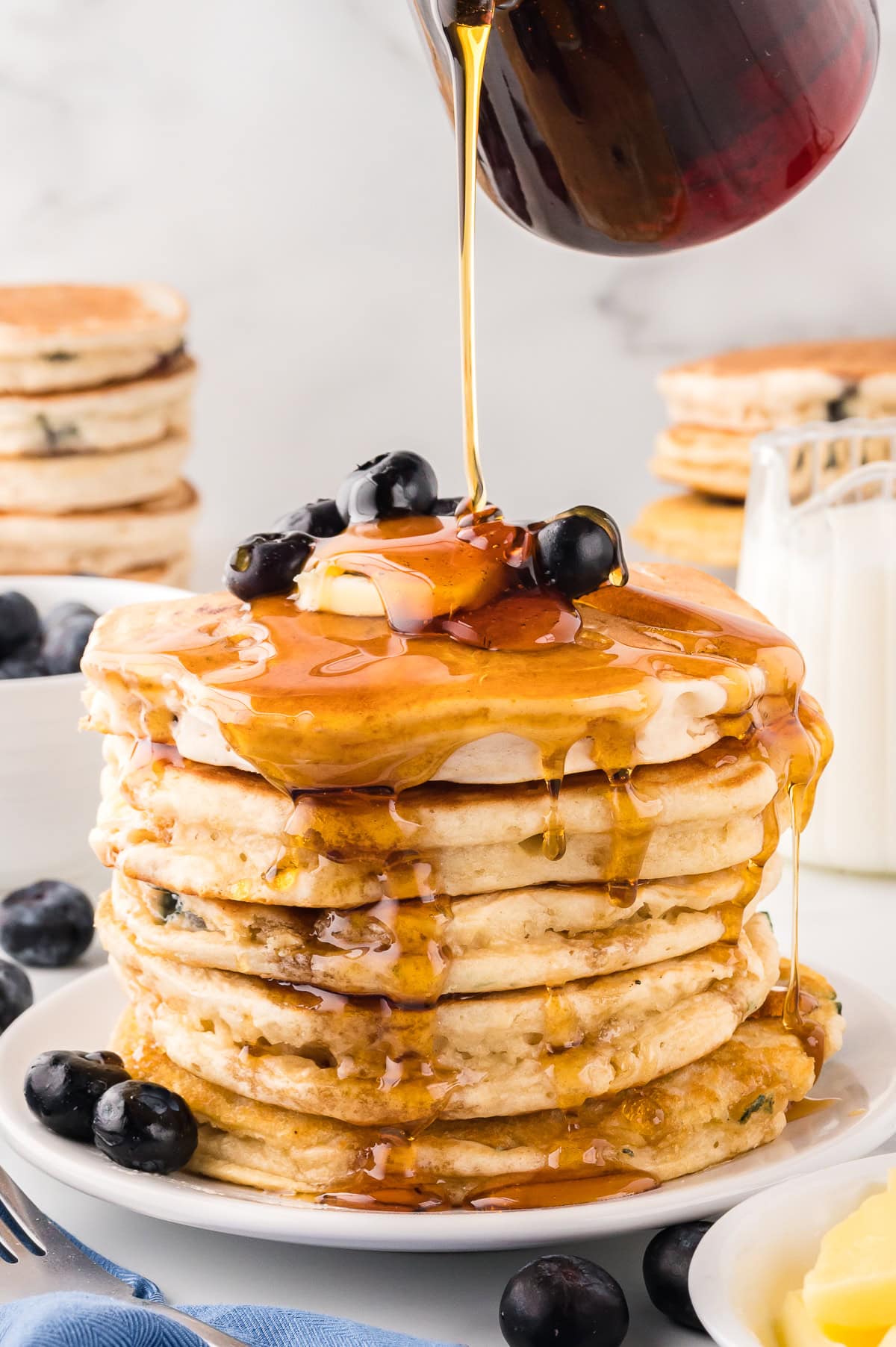 No matter what you pair with these fluffy blueberry pancakes, they just make the mornings a little brighter.