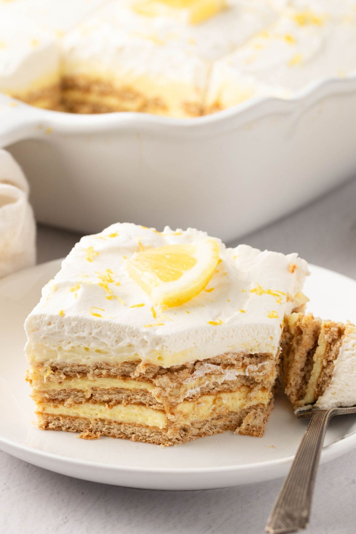 To Store: Keep the lemon icebox cake in the fridge, covered with plastic wrap for 3-4 days.