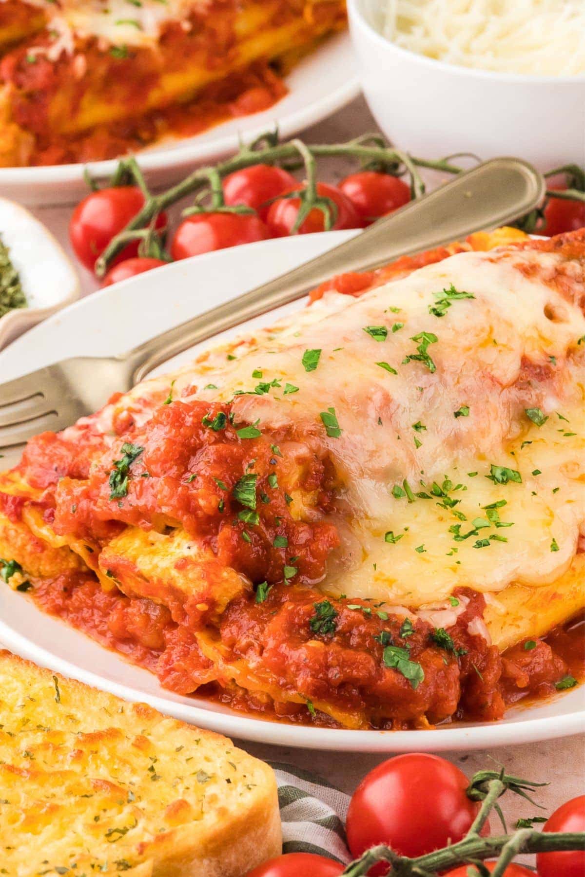 It's kind of like cheese lasagna, with plenty of chewy pasta, tangy sauce, and melted cheese. Only with this dish, you get fun tube shapes – like Italian enchiladas!
