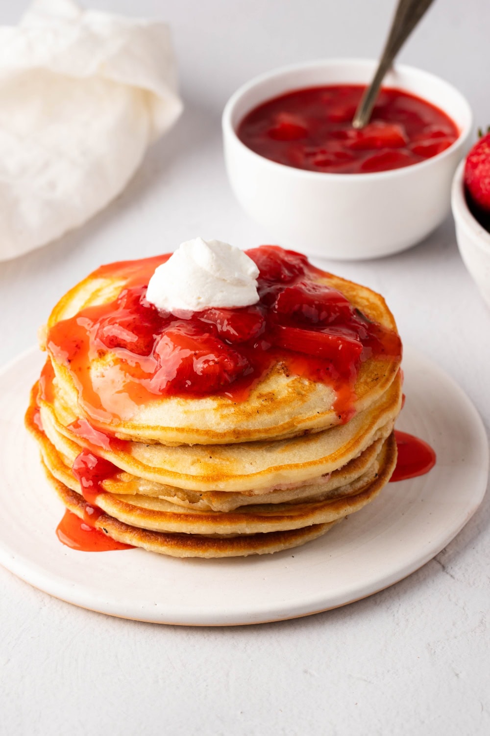 - Granulated Sugar: Adds just the right touch of sweetness to both the pancakes and the sauce. If you prefer a less sweet pancake, you can reduce the sugar slightly — the strawberry sauce will still shine!